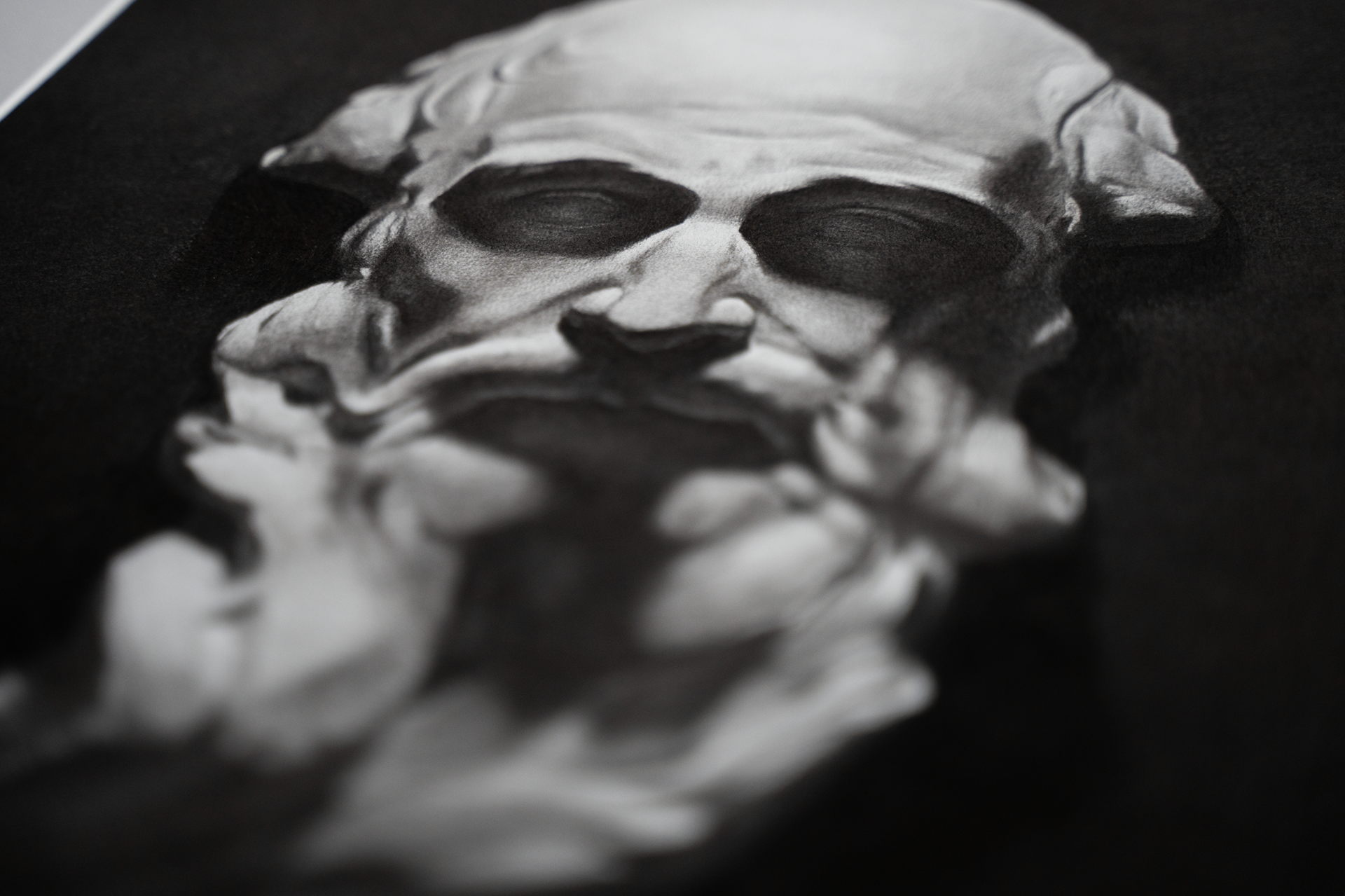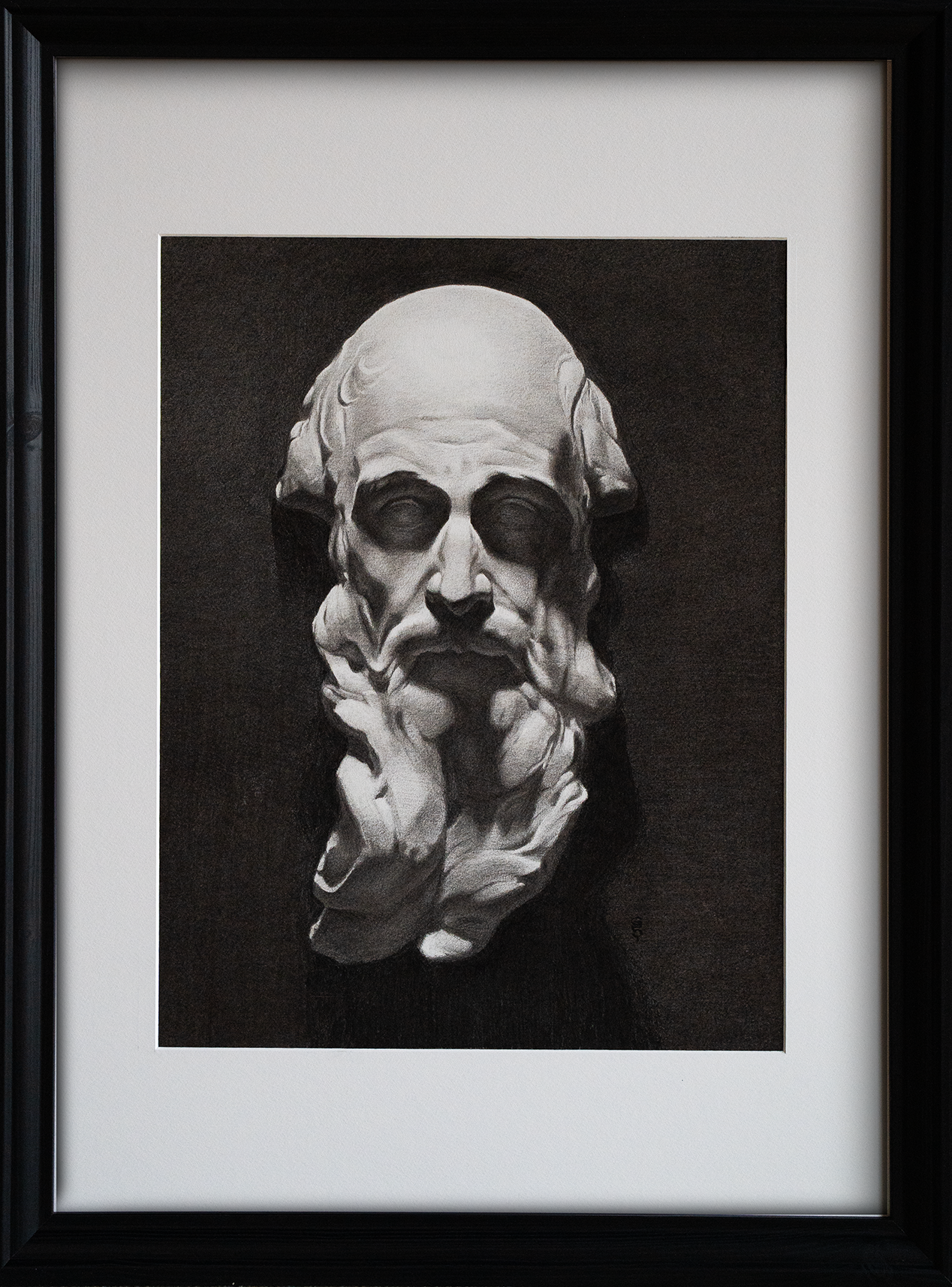 (charcoal on paper, 50x70cm, wooden frame). It is a cast study after François Duquesnoy's (1597-1643) Vatican sculpture. I found the twirling of the saint's beard in the original quite extraordinary, giving this saturnesque portrait an airy weightlessness and grace.